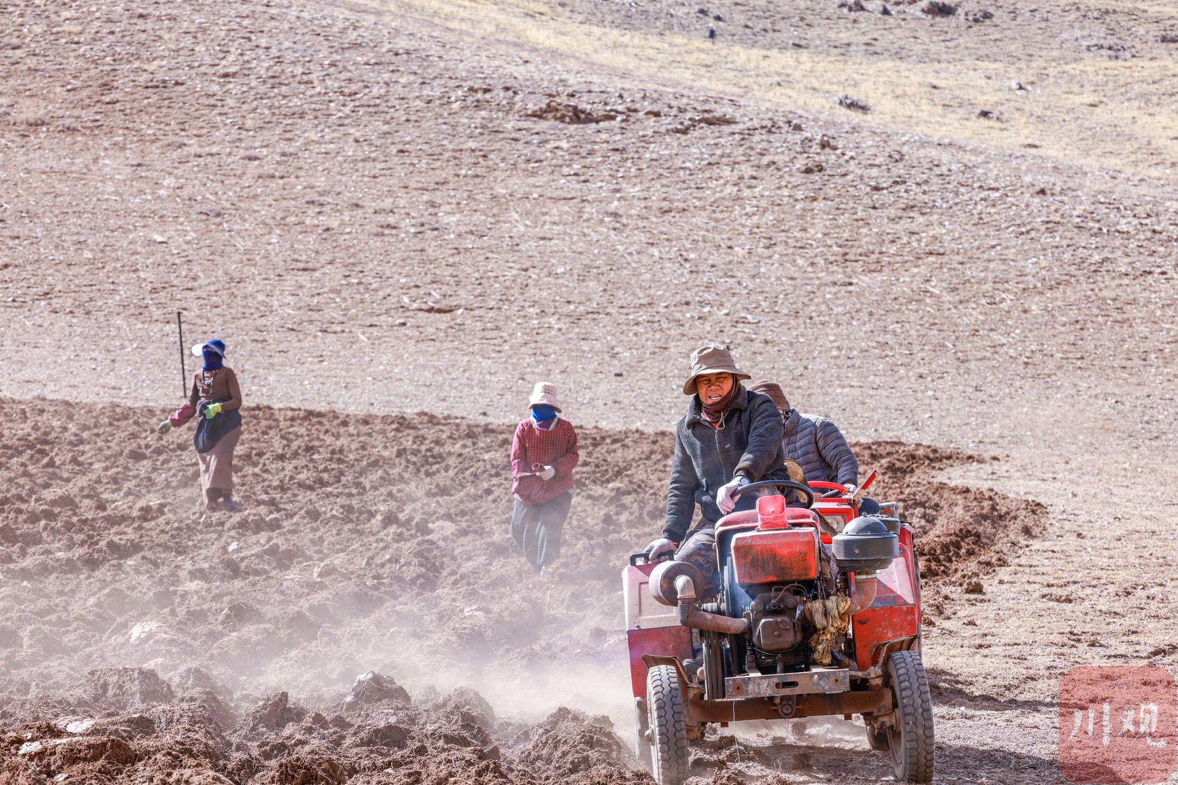 石渠县老百姓种草现场图片。 洛绒尼玛 摄