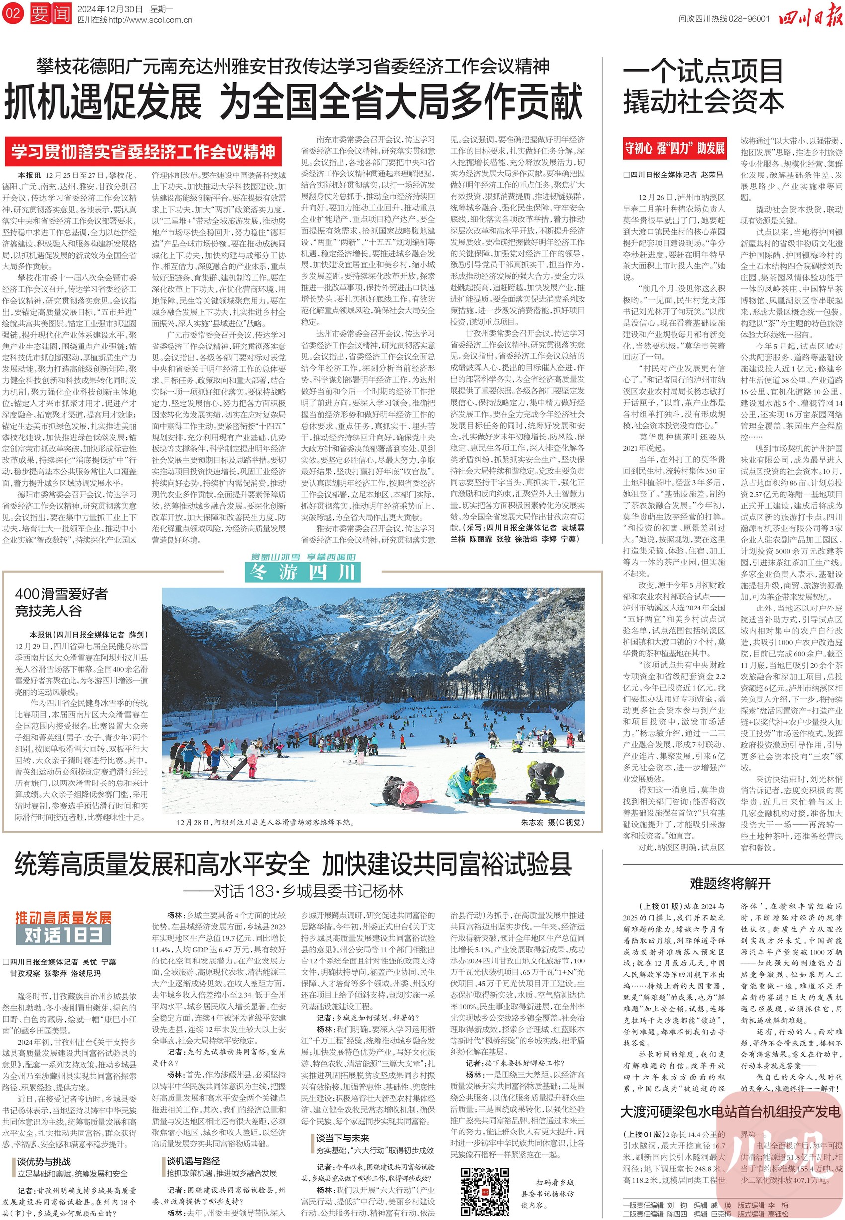 12月30日,四川日报刊发报道,就如何建设共同富裕试验县,专访乡城县委书记杨林。原文如下——