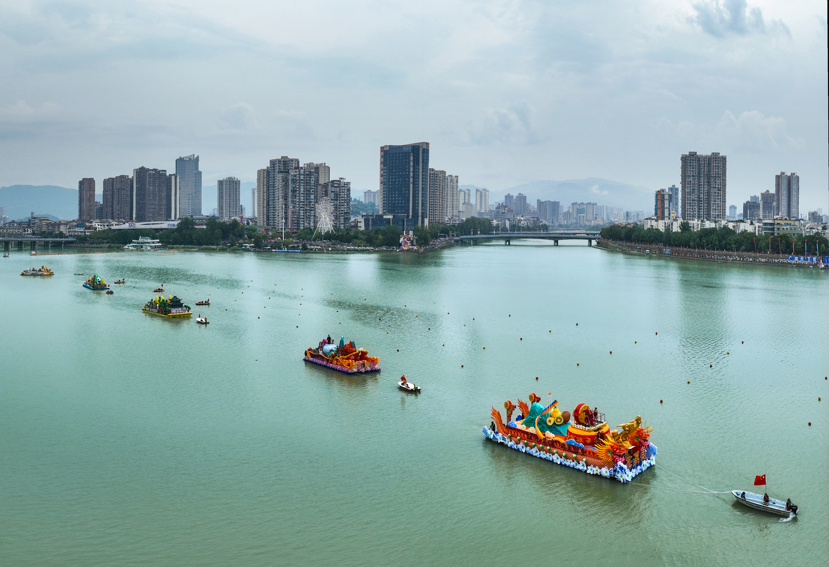 2024年广元女儿节上的彩船巡游。