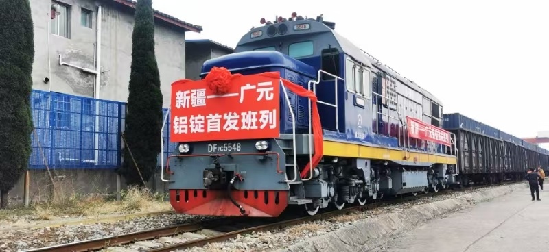 广元物流产业——新疆至广元的首发铝锭班列。