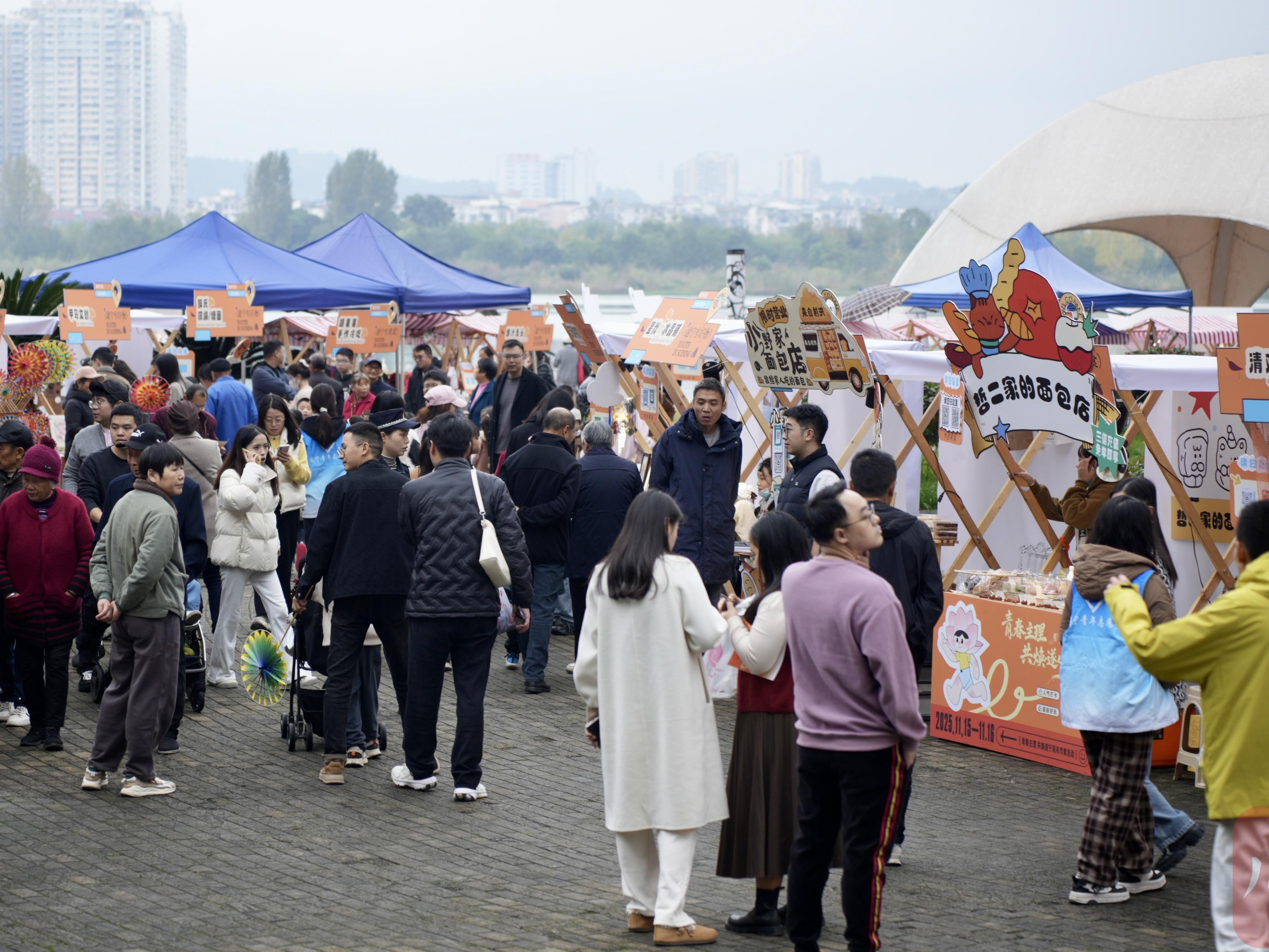 “聚遂宁、越青春”跨年电音节以五彩之心彩虹坊、曲水坊为核心,邀请知名DJ与乐队与市民游客携手共舞,共同期待2025年的到来。当天,沉浸式游园体验、大学生街头艺术展演以及年货集市等配套活动分时段开展,其中,现场年货集市以“好事年年”为主题,节日氛围浓厚,设有文创和新年集市区、美食展销区、遂宁特色商品展销区四大区域,满足市民游客吃、住、行、游、购、娱多元需求和体验。