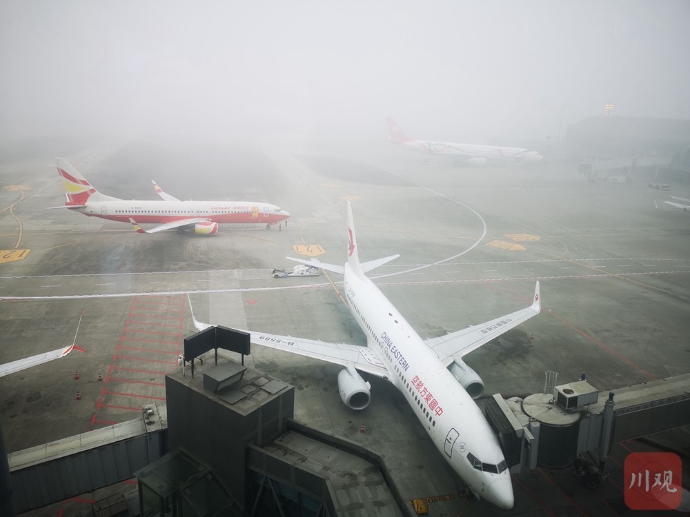 双流机场温馨提示乘机旅客,由于冬季是大雾频发的季节,乘机前请多留意航班及天气动态。如遇到天气原因导致航班延误或取消,请多一些耐心等待,多一份理解包容,机场方面一定会尽最大的努力做好各项服务保障。