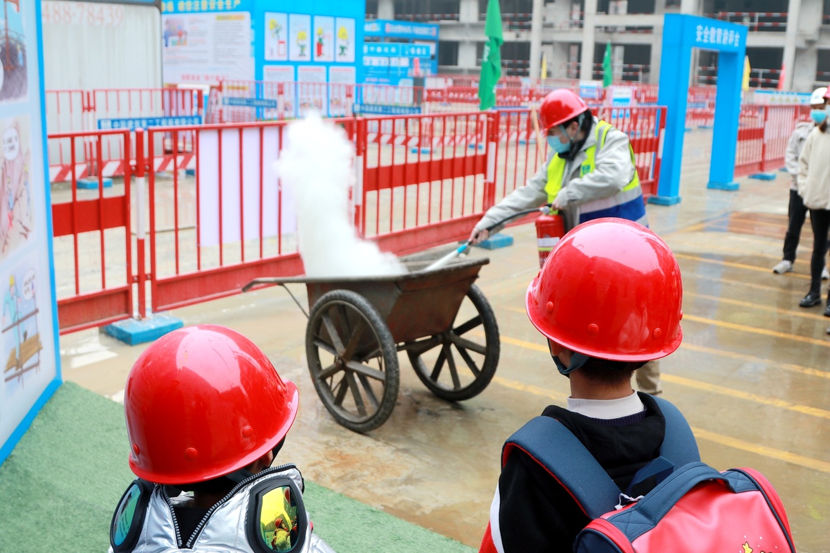 随后,小朋友们在大朋友们地带领下,来到施工现场,体验起了父母工作的内容。小小消防员拿起灭火器,对准火源,“噗、噗”两下就将火扑灭;小小测量员睁着一只眼对着水准仪读起了水准尺上的读书;小小安全员体验了VR各类安全事故,获得了“丰富的”安全经验。电子科技大学青少年科教基地还为小朋友们带来了跳舞机器人体验,小朋友们戴着传感器,手指头勾一勾,手腕扭一扭,机器人就跟着节奏跳起了“机械舞”。