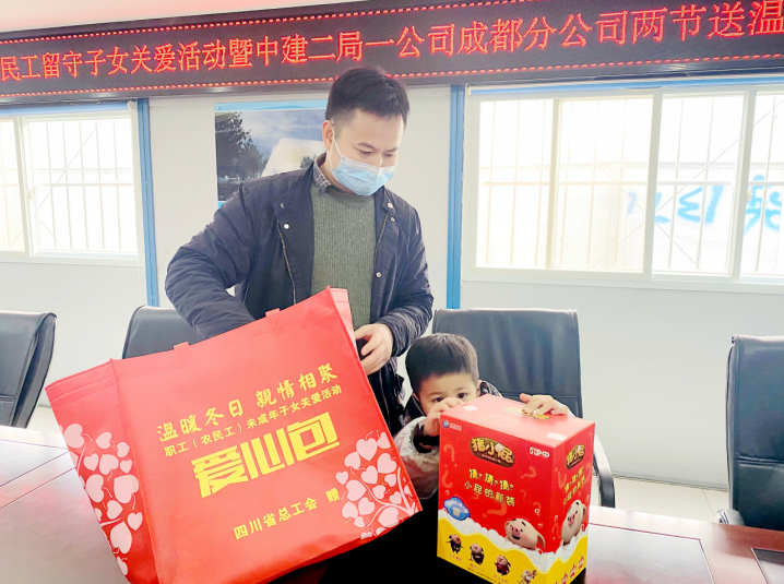12月27日,省总工会“温暖冬日,亲情相聚”农民工留守子女关爱活动暨中建二局一公司成都分公司工会两节送温暖活动在该公司北辰·鹿鸣院项目工地开展,将农民工留守子女接到施工现场体验父母工作的内容与环境,给孩子们送上党委政府和工会“娘家人”的关爱。