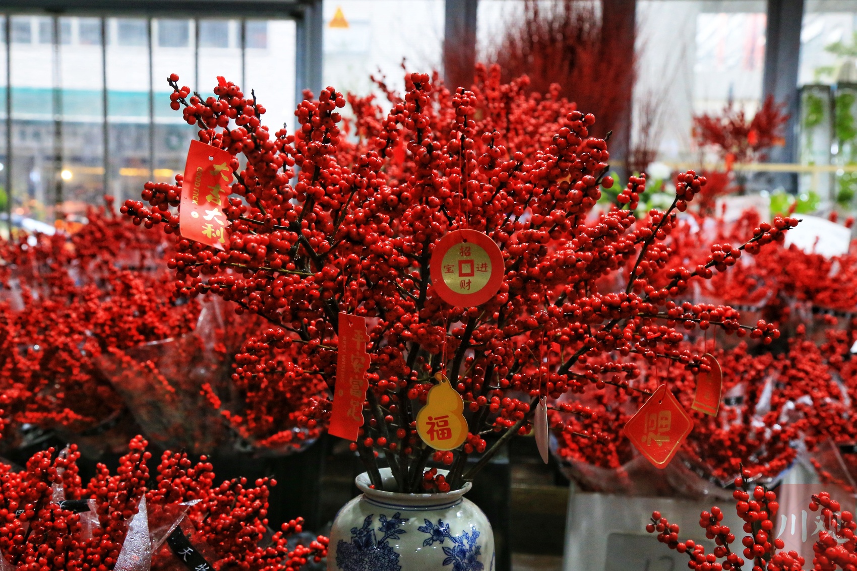 卉升花市里,北美冬青被摆放在显眼位置。