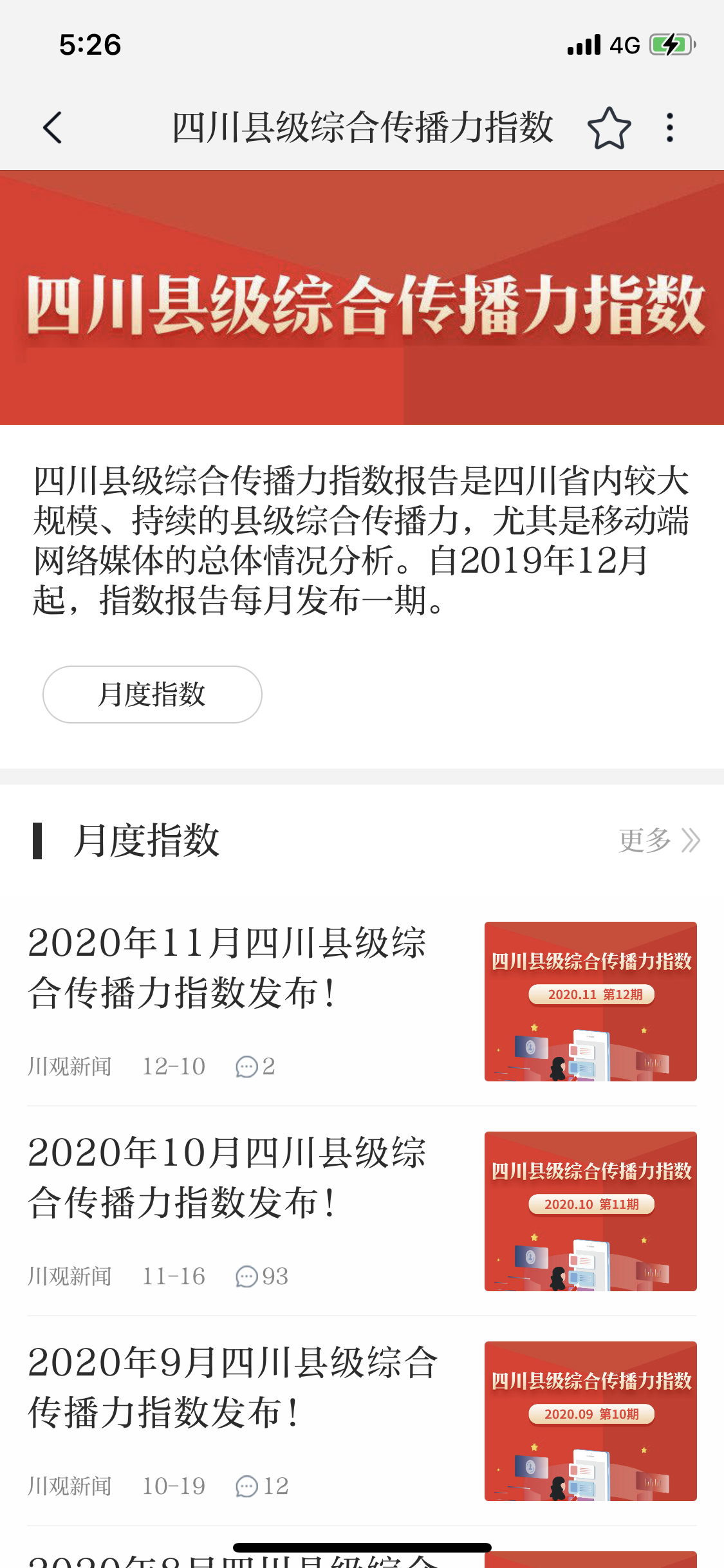 据了解,“四川县级综合传播力指数”就是基于数据共享平台打造的创新产品。指数将全省县级政务号、县级媒体号和各地有影响力的垂直类帐号、个人帐号纳入四川云的数据共享平台。
