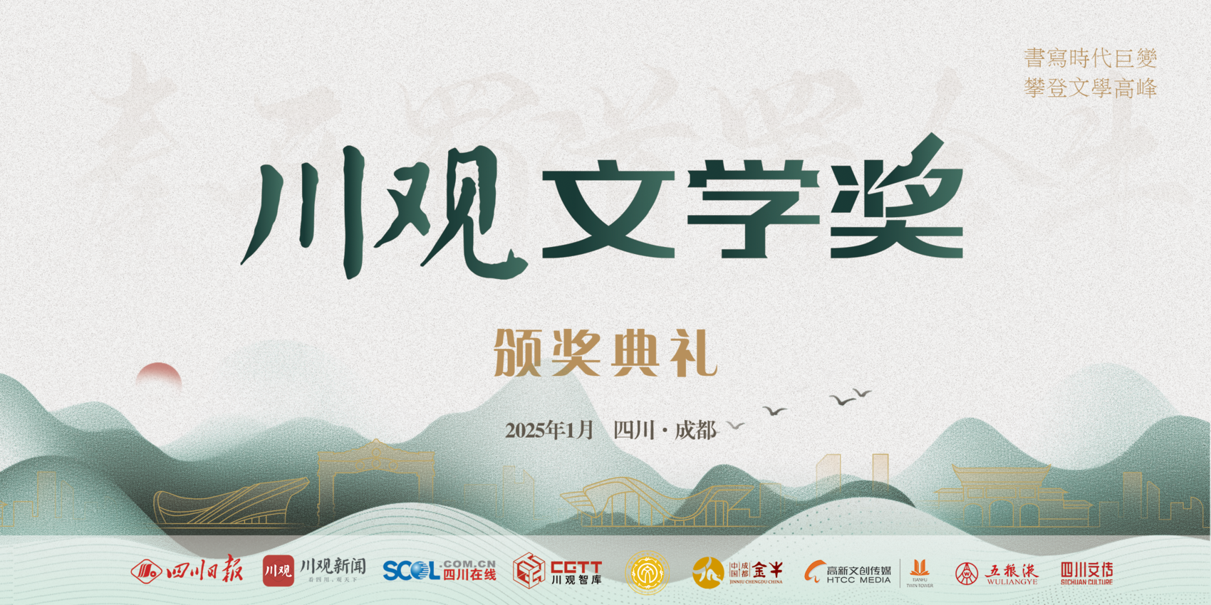 1月17日至19日,由四川日报社主办,川观新闻、成都市文联协办,川观新闻文化频道、成都市金牛区文联、金牛区融媒体中心、金牛城投集团交子文化公司、五粮液、成都高新文创传媒有限公司、四川文化传播有限公司承办的2023年度川观文学奖颁奖典礼系列活动将在成都精彩亮相。李敬泽、吉狄马加、阿来等来自全国各地的文学名家、评论家、编辑家与川观文学奖(2023年度)获奖作家、评委代表、媒体代表等将齐聚蓉城,向文学致敬、向作家致敬、向时代与读者致敬。