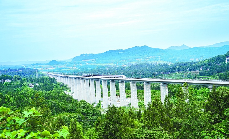 列车飞驰在巴南高铁仪陇段(资料图)。张梓睿 摄