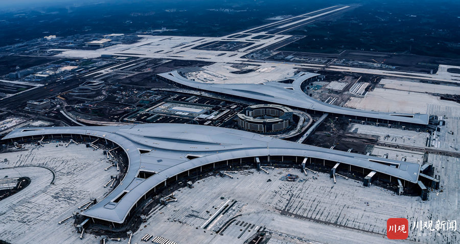 “川报号”直升机飞抵即将正式校飞的天府国际机场。6天后,校飞飞机在新机场留下第一道“吻痕”。