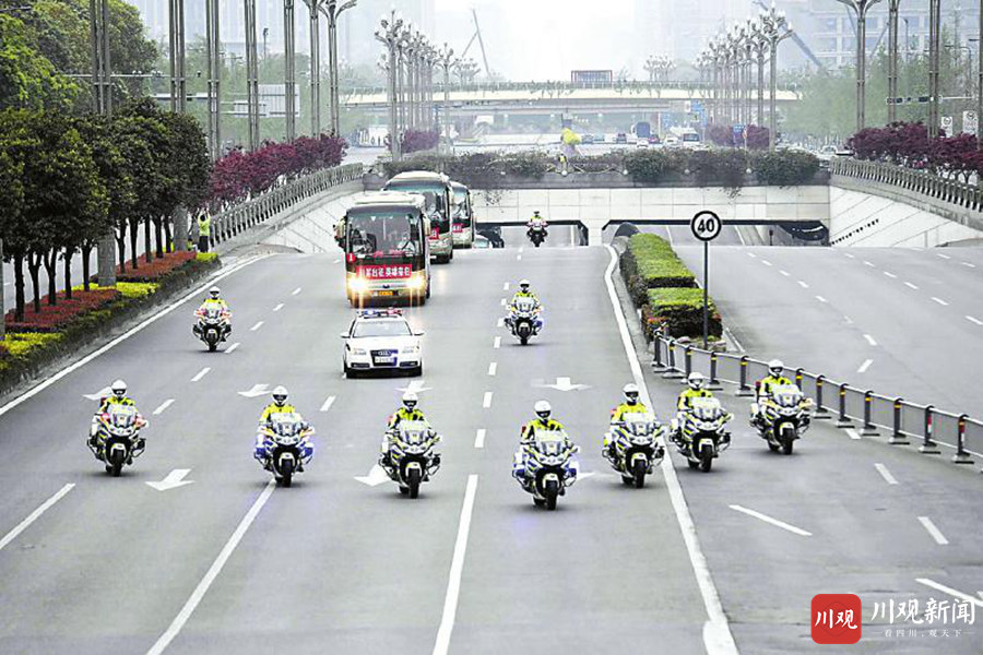 四川最后一批援助湖北医疗队队员平安抵川。至此,四川援助湖北医疗队1463人全部凯旋。警用摩托车开道,12辆大巴车载着医疗队队员前往集中隔离休养基地。