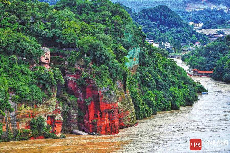 受持续特大暴雨影响,乐山大佛景区遭受洪涝灾害。8月18日,乐山大佛“脚趾头”70年来首次被淹。
