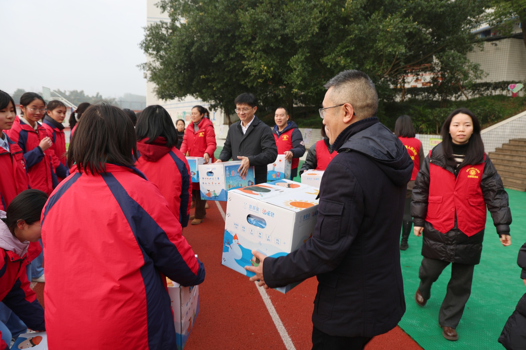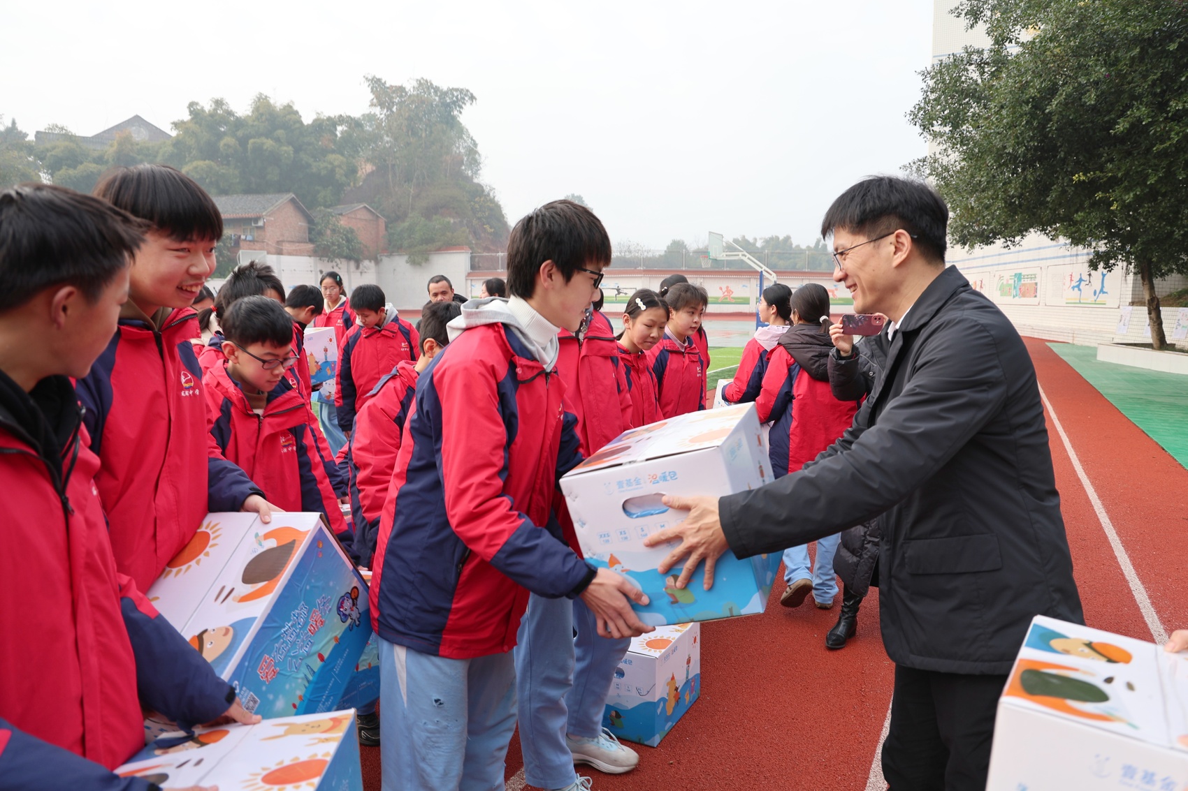 在龙潭中学,曾学原详细了解学校教学现状、师资力量及学生学习生活情况,带领志愿者将“爱心温暖包”送到学生代表手中,并向孩子们表达温暖的关怀和新春的祝福。表示自贡市中级人民法院连续五年参与“爱在盐都·暖冬行动”公益活动,自发捐助送温暖与龙潭中学建立了常态化联系,取得良好成效。