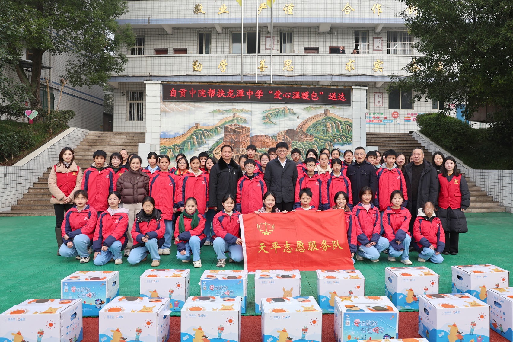 1月9日,自贡市中级人民法院党组书记、院长曾学原深入开展新春走基层、送温暖活动,带队到贡井区龙潭中学慰问并调研龙潭法庭工作,自贡市中级人民法院党组成员、副院长李胜,党组成员、机关党委书记周红军,贡井区法院党组书记、院长陈伟及天平志愿服务队志愿者随行参与。