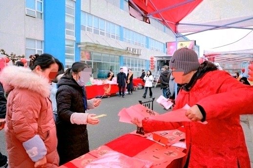 一幅幅寓意吉祥的春联,在一撇一捺间新鲜出炉,手法娴熟的民间艺人在片刻间就将金色的糖液捏成了灵动的蛇年生肖造型,而在新春传统文化造型打卡区,园区职工纷纷驻足、拍照打卡留念。