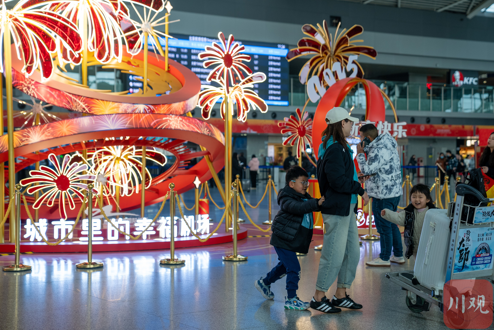 双流机场T2航站楼在春运期间进行新春氛围营造。