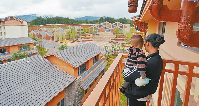 昭觉沐恩邸社区新居民眺望新居。 川观新闻记者 华小峰 摄