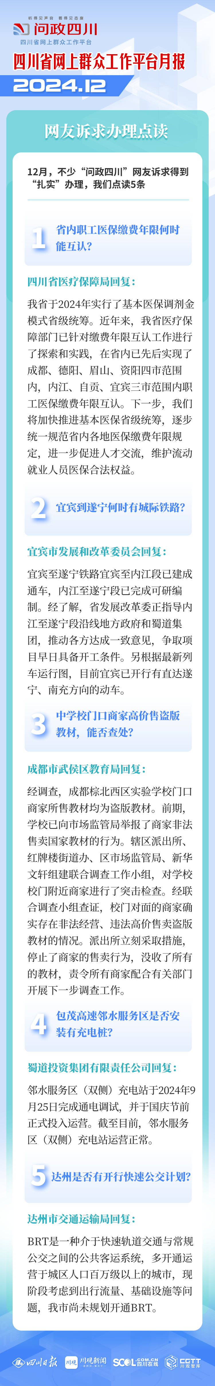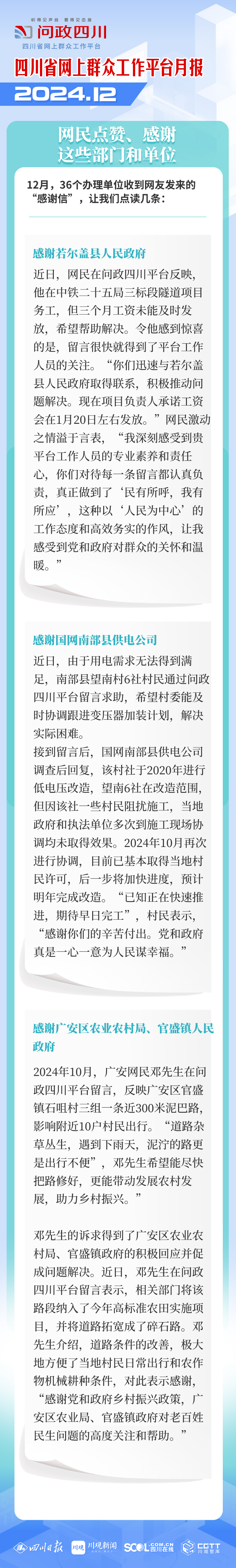 感谢问政四川!问政四川把老百姓急需解决的问题传达给相关部门,及时给老百姓回复解决结果,是连心桥,是老百姓放心的问询平台!民生无小事,解决老百姓最关心的热点问题,就是大事!问政四川2024年做得很好,希望2025年,问政四川依然如此,成为老百姓的《十万个为什么》!点赞问政四川!