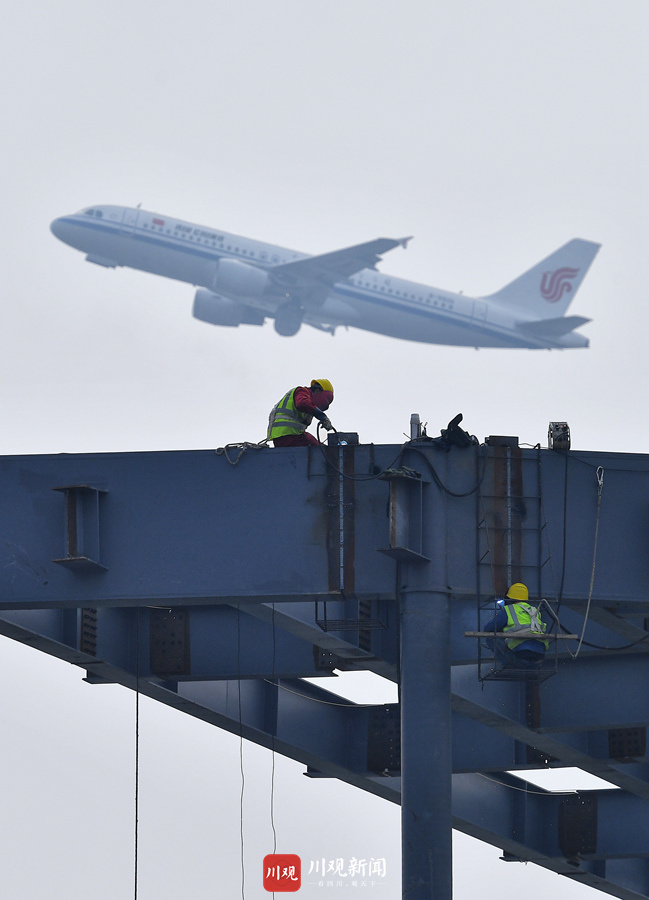 复工后的工人在成都市双流区国际空港商务区展示中心内焊接钢结构。