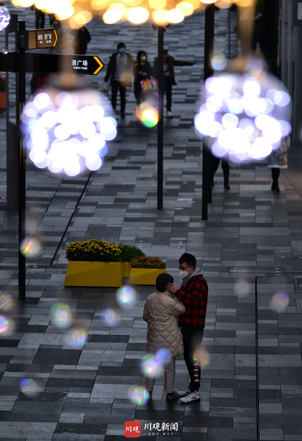 成都市太古里商业区内的一对年轻人。随着疫情的控制,成都市的商业逐步恢复。