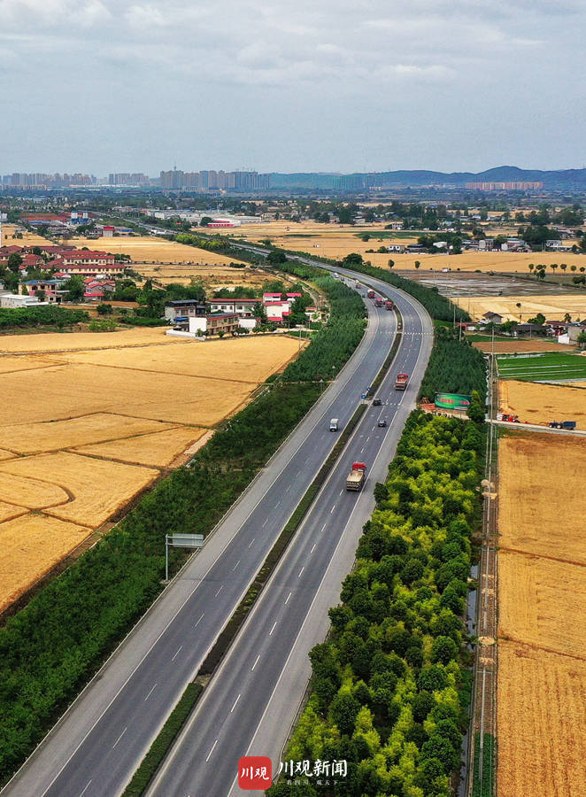 德阳市广汉国家现代农业产业园,小麦成熟进入收割季。