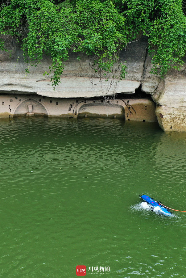 水下机器人探访资阳市安岳县李家镇磨滩河水库的水下石刻造像,通过这次水下探寻全面收集了文物信息。