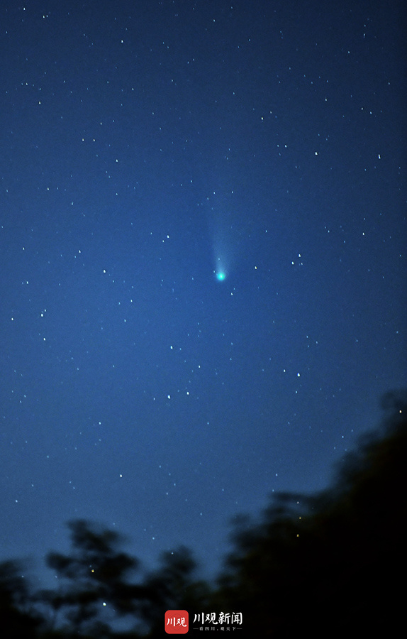 新智彗星出现在泸州市古蔺县大寨乡上空,这颗6000年回归一次的彗星已经变绿正加速远离地球。