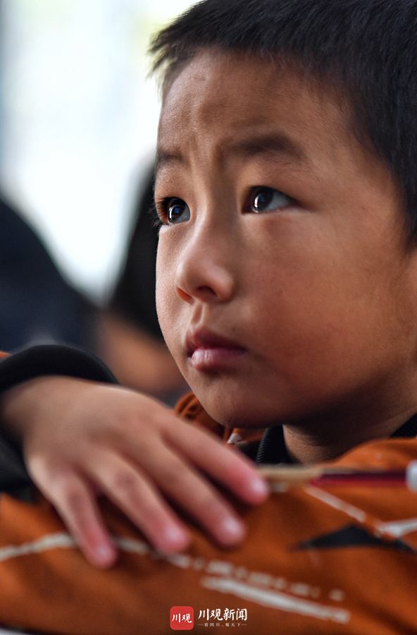凉山州金阳县德溪乡中心校,一名正在认真听课的学生。
