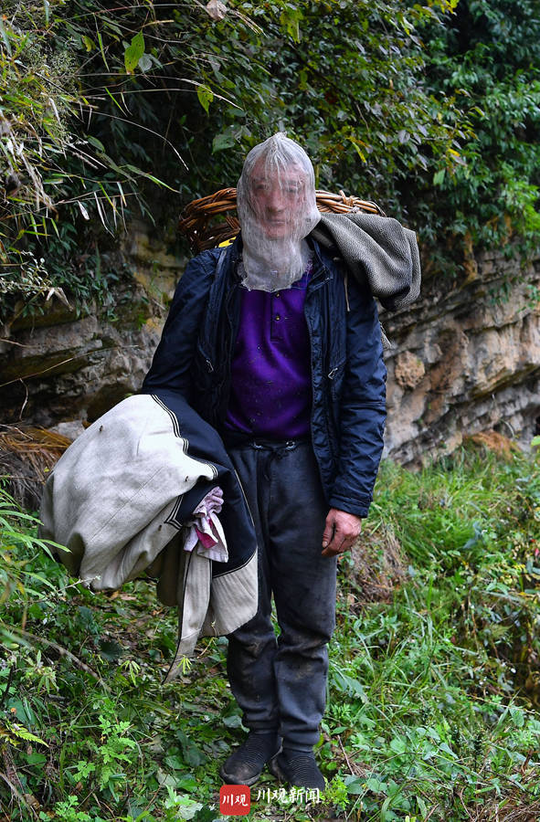 凉山州美姑县瓦古乡瓦以村,传统采蜜人吉克石者在山梁上。