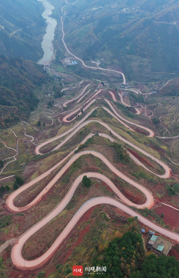 泸州市古蔺县椒园镇,空中俯瞰十二道拐扶贫公路。
