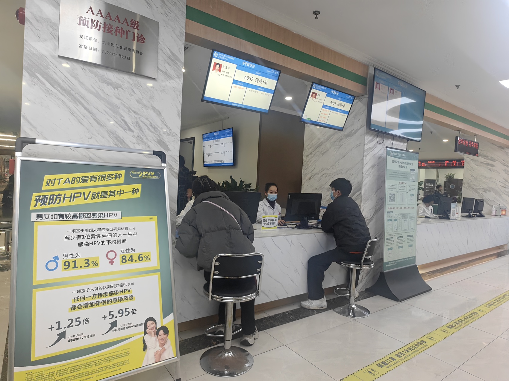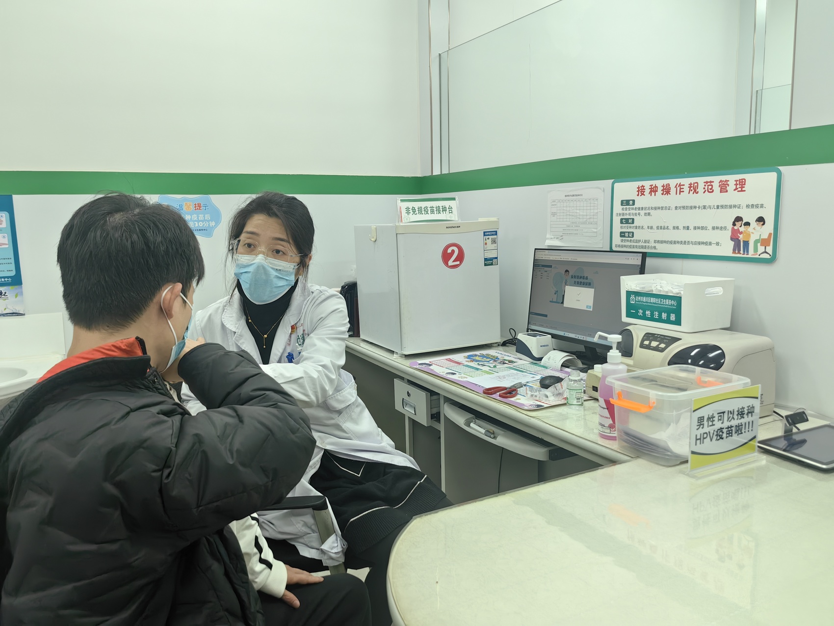 郭先生介绍,前段时间他通过网络科普文章得知男性HPV疫苗获批上市,于是他提前到社区预约好接种事宜,等待接种。“之前陪女朋友过来接种疫苗的时候就了解过男性HPV感染的危害,听说男性可以接种便立即过来了。”
