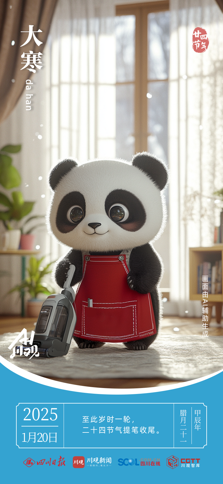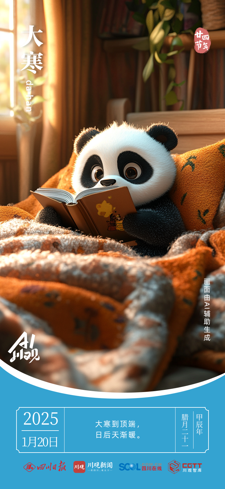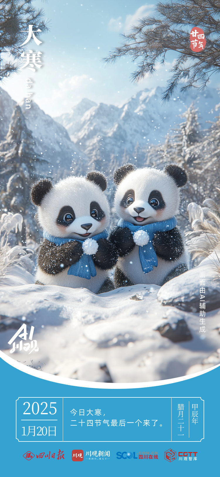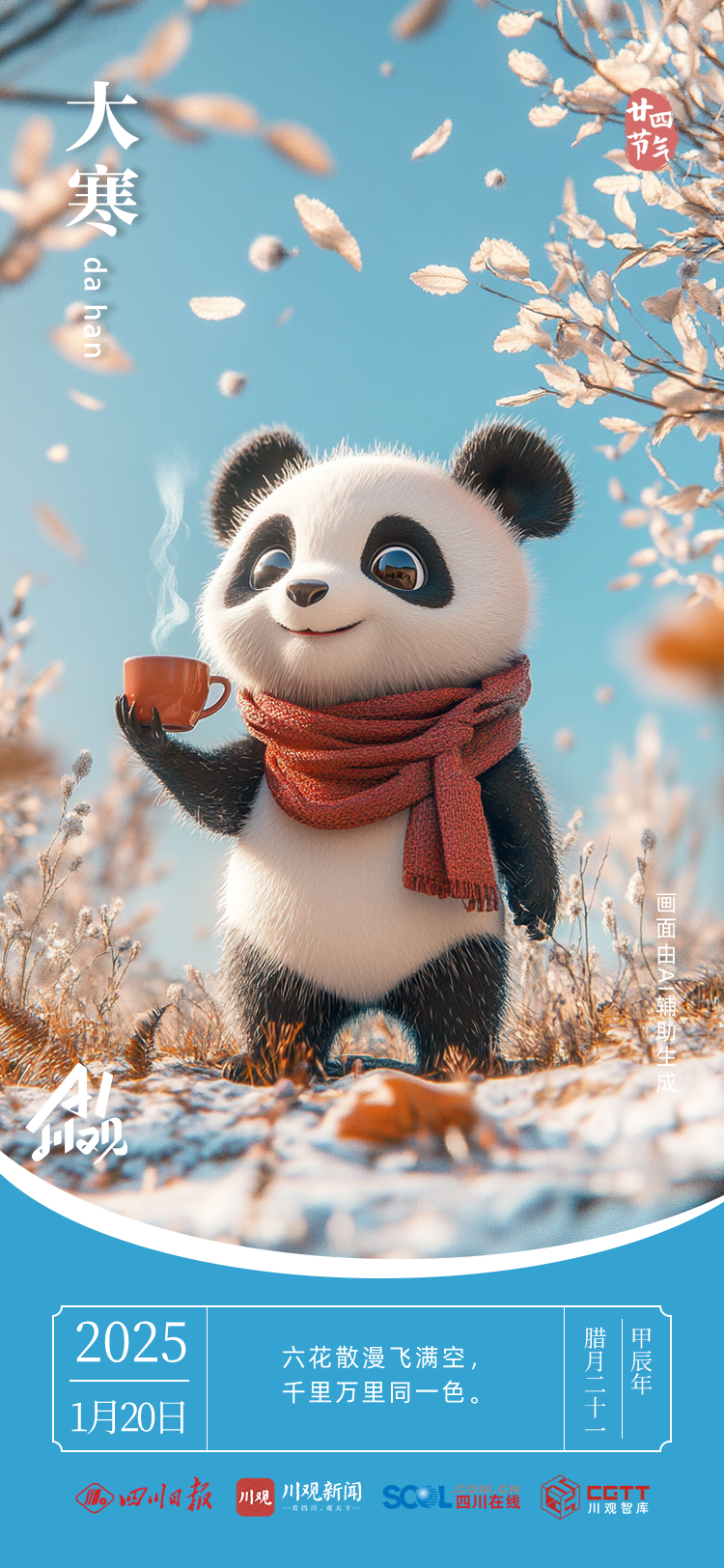 当古老的二十四节气邂逅AI,恰似传统与现代共舞。AI以灵动笔触,勾勒出大寒的凛冽与壮美,赋予节气全新生命力。“一候鸡始乳;二候征鸟厉疾;三候水泽腹坚”,往昔晦涩的物候,在科技映照下,变得鲜活可感。让我们借这奇妙融合,领略千年节气文化的深邃魅力。