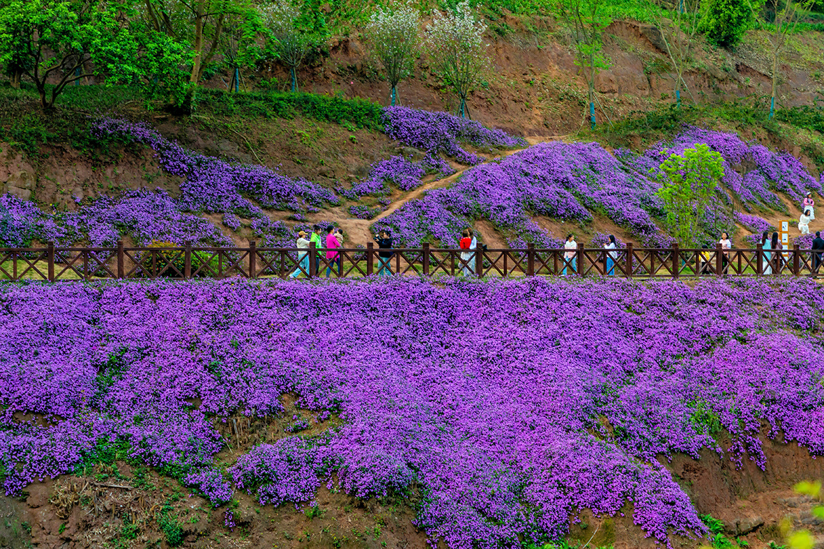 合江县江北田园繁花盛开,吸引众多市民前去休闲打卡 。