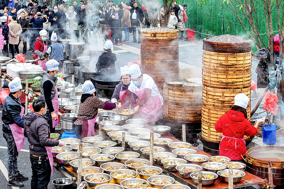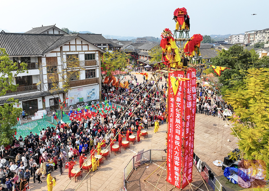 2024年2月12日,大年初三,合江县尧坝镇民俗非遗项目表演欢庆新年。