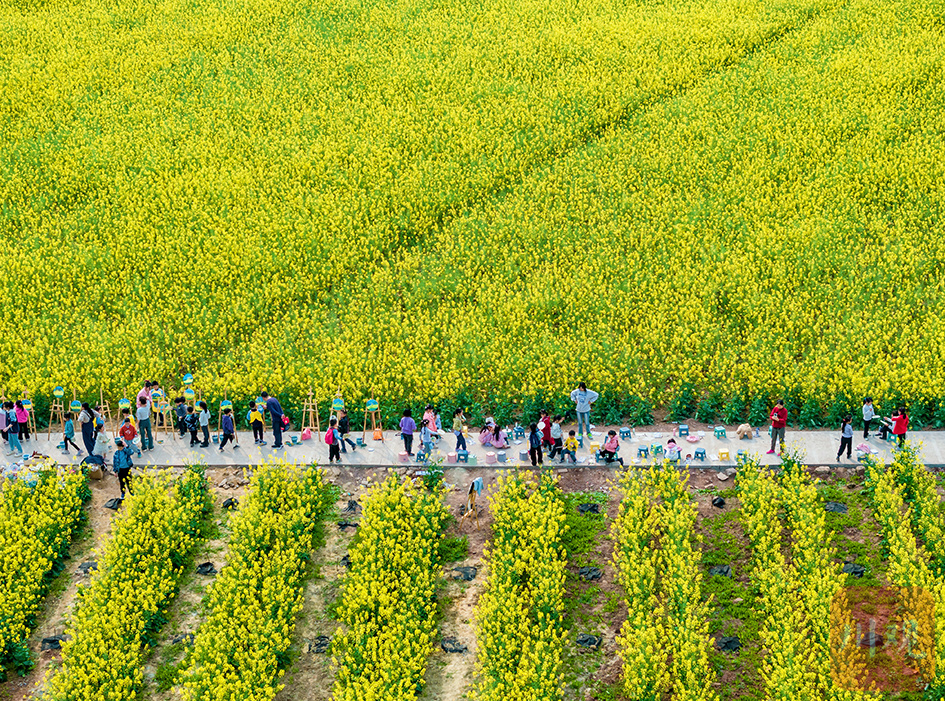 阳春三月,川南大地春光明媚,四川省合江县符阳街道会青山村菜花地当地小学生野外写生。