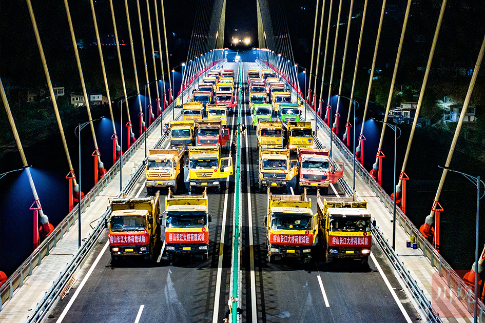2024年9月20日深夜,合江县榕山长江公路大桥进行荷载试验,为即将实现通车打开最后 一道屏障。