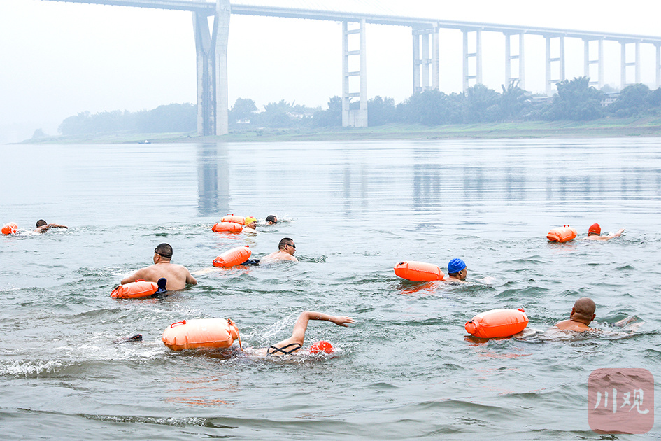 2024年11月16日,合江县城长江段,近百名冬泳爱好者相聚参加畅游长江冬泳健身活动,乐享冬泳运动带来的快乐。