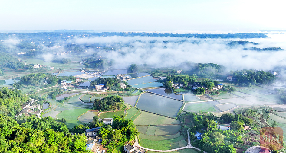 2024年5月22日,合江县福宝镇骑龙村,群山叠翠,田野碧绿,星星点点的农舍点缀其间,如诗如画。