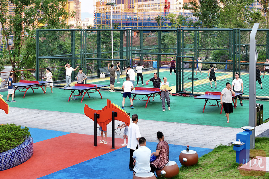 2024年7月1日傍晚,合江县城市音乐荟“口袋公园”,市民在健身休闲游玩。