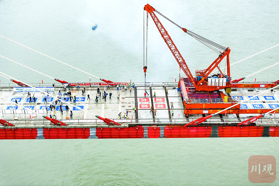 2024年4月22日上午,随着最后一片桥面板吊装就位,合江县榕山长江大桥顺利合龙。