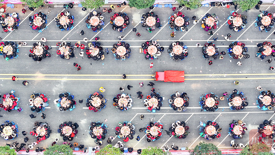 2024年2月2日,合江县江北新城学府家园,市民欢聚一堂摆起了长桌宴,共同喜迎新年到来。