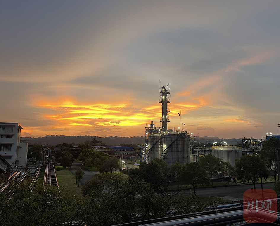 晚霞映照下的四川合江天华公司。