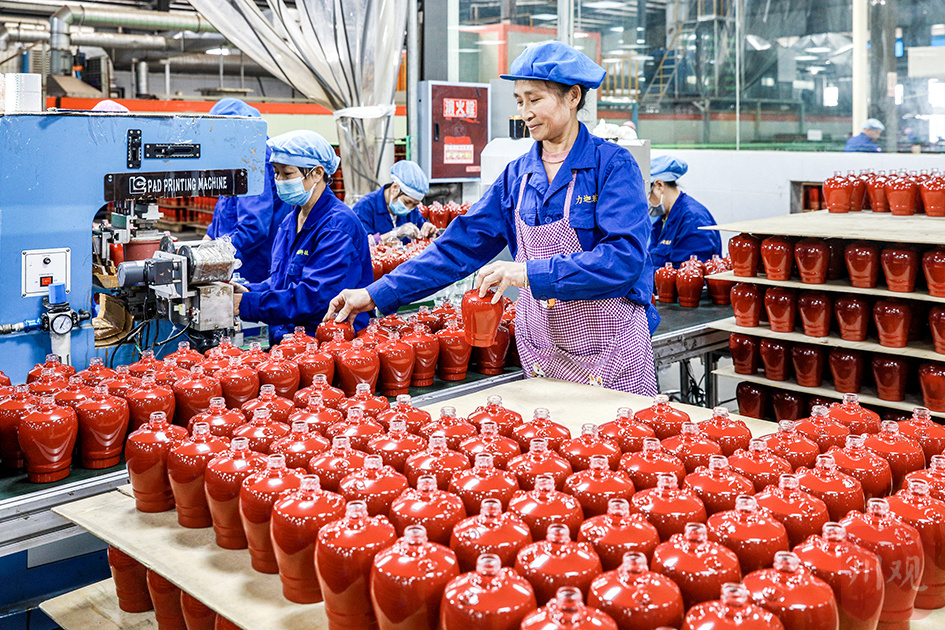 2024年10月14日,合江县临港工业园区,工人在泸州川玻科技有限公司生产线上赶制订单,冲刺四季度。