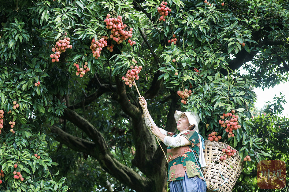 2024年7月13日,合江县符阳街道三块石村,果农在采摘新鲜荔枝。