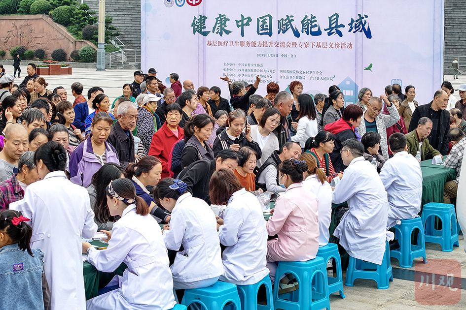 2024年10月26日,“健康中国赋能县域”基层医疗卫生服务能力提升交流会暨专家下基层义诊活动在合江县城举行,吸引当地群众踊跃参与。