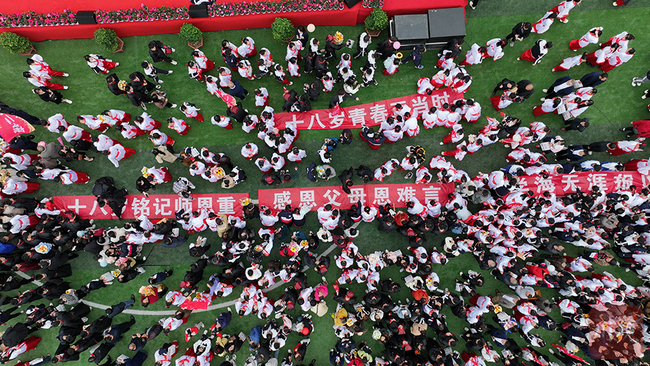 合江县中学校2022级学生成人礼结束,学生正在签名留念。