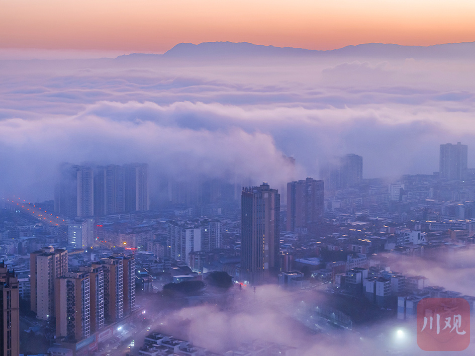清晨,合江县城区晨雾如轻纱缭绕,城市如梦似幻,宛如绝美水墨画。