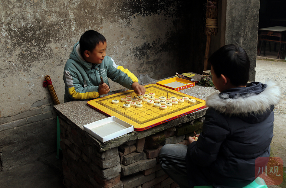 合江县凤鸣镇充满古韵的老街边,两个小孩沉浸在专心对弈之中。