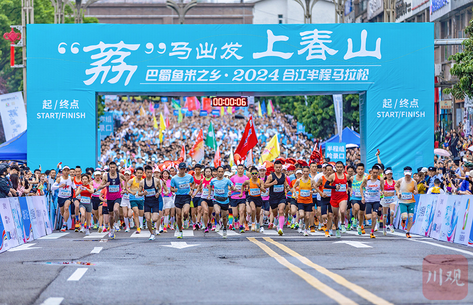 巴蜀鱼米之乡·2024合江半程马拉松与迷你马拉松、欢乐跑依次鸣枪开跑。