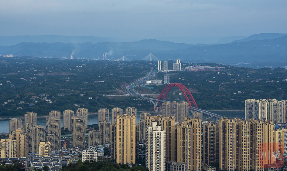 从笔架山上俯瞰合江县城新貌,感受城市建设的日新月异。