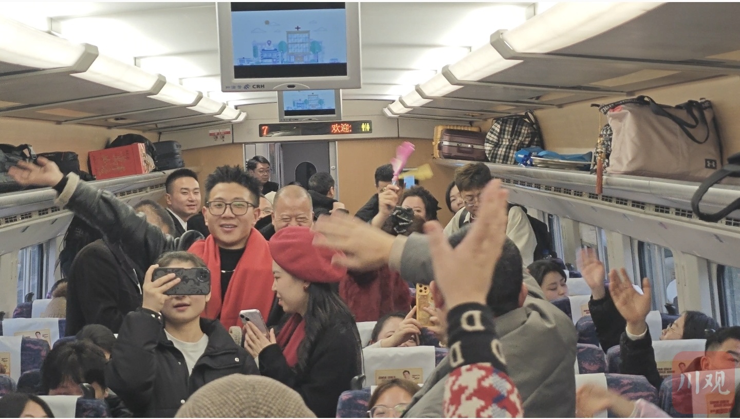 1月17日中午,渝昆高铁C5568次列车从宜宾南溪站驶出,开往重庆西站。在飞驰的列车车厢内,一场别开生面的“渝行序曲·高铁暖途”文旅推介活动精彩展开,旅客们一边享受高铁的舒适便捷,一边领略南溪的独特魅力。